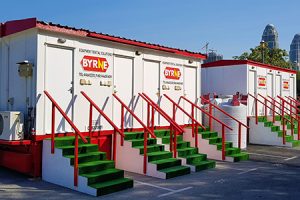 Toilet units range from small-scale with a single toilet to large-scale multi-cubicle all female cabins, all male, or split.